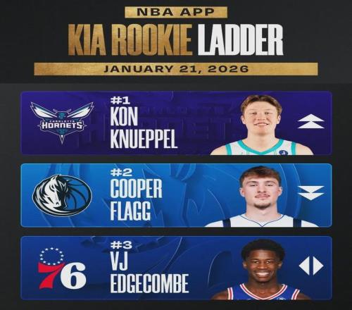 三球本场比赛投篮命中率只有6.7%,成为NBA本赛季单场出手15+的最低命中率。此外,三球也是本赛季第三位单场三分球10中0的球员,此前两位分别是加兰和小贾巴里-史密斯。同样是今天,NBA官方公布了最新一期的新秀榜。